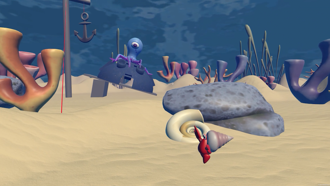 Shell Yeah! is a 3-vs-1 co-op party game where three players team up to control a crab by pressing buttons in sequence to maintain its speed, while the fourth player becomes an octopus, using laser beams to disrupt their progress. The crab's goal is to reach three checkpoints, gather weapons, and defeat the octopus, creating a thrilling battle of teamwork and strategy.