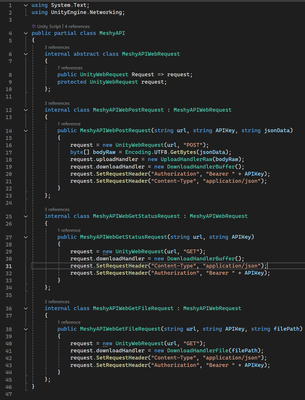 Learning from OpenAI's REST web API structure, I wrapped Meshy's API into a request-based class and built a flow for sending requests and pulling the status of those requests to construct this system.